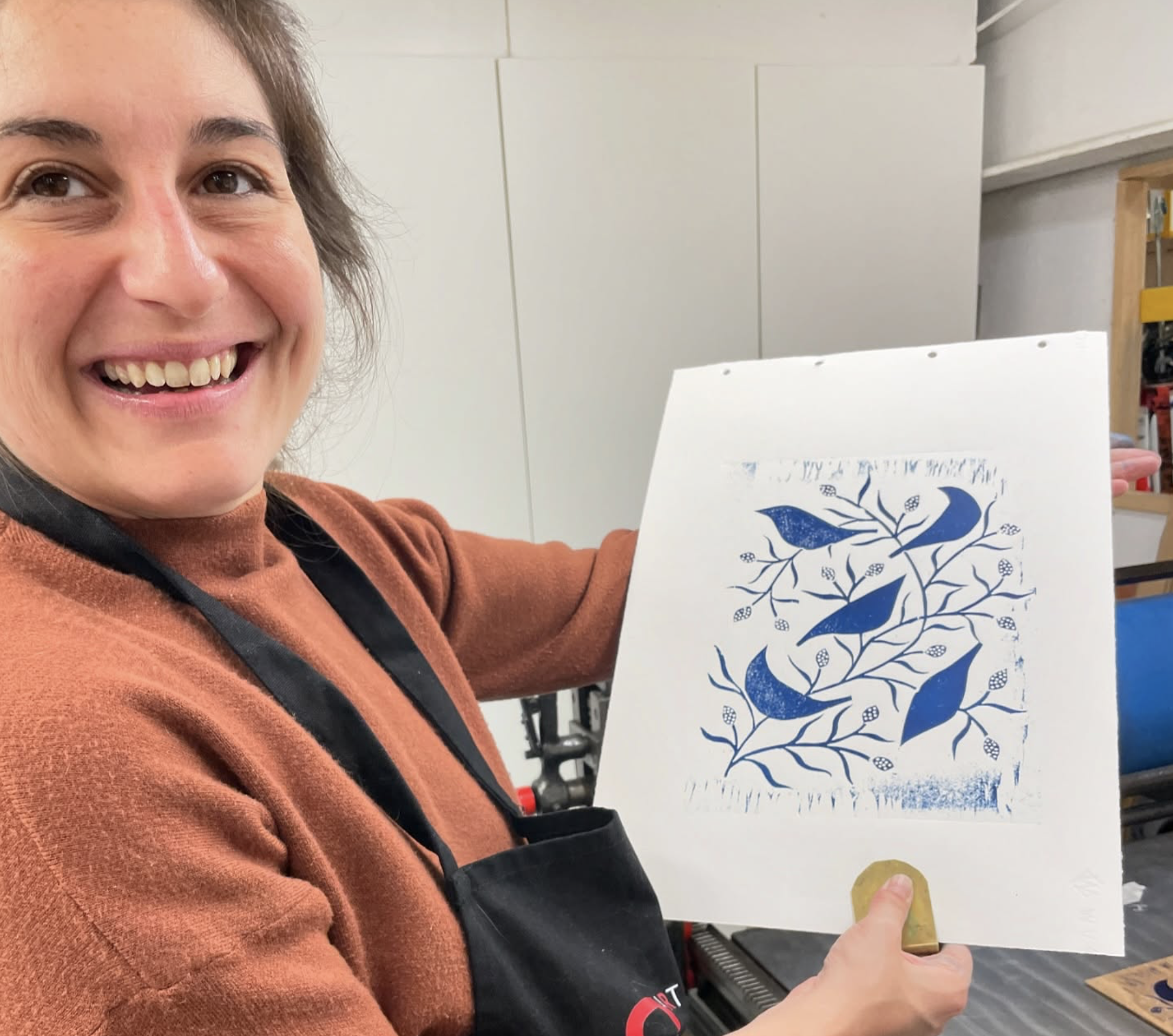 O objetivo de hoje era finalizar a entalha da última matriz, fazer testes de cor e provas de impressão para ajustar o registro.
