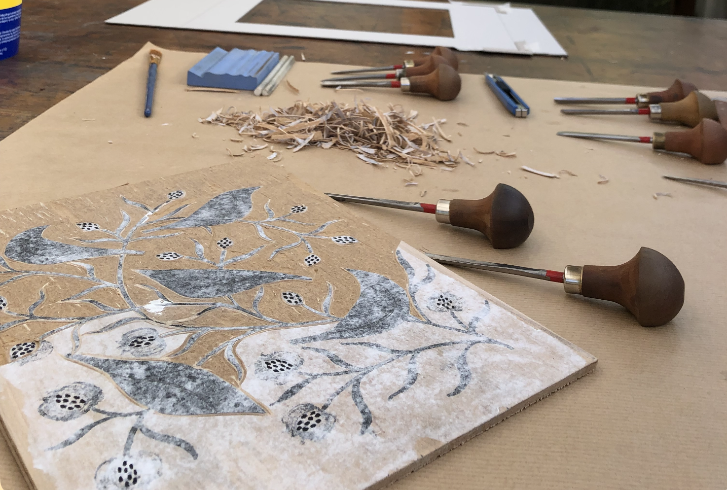 Terminei a entalha da última matriz — a do azul, que tinha mais detalhes do que as outras duas.